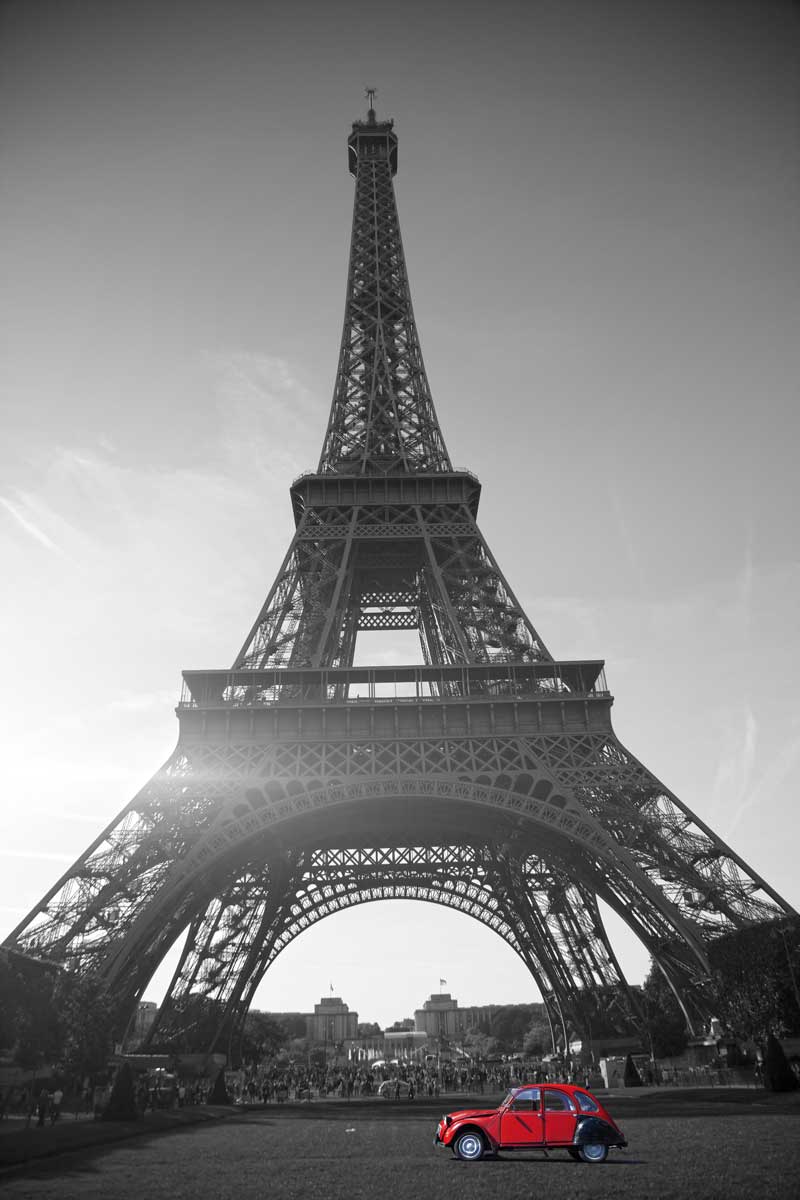 - طرح منحصر به فرد: ترکیب نمادین برج ایفل با یک خودرو کلاسیک قرمز.
